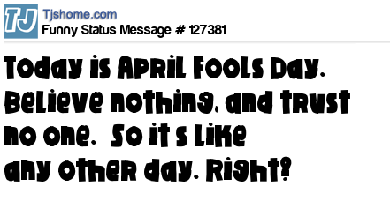 - # 95516 good joke today...single people change ur realtionship status to "in a relation". when friends ask who it is say "april....April Fools"