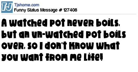 X says A watched pot never boils, but an un-watched pot boils over, so I don't know what you want from me life!