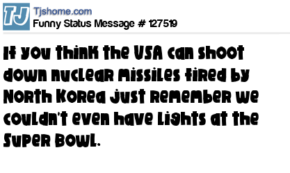 X says If you think the USA can shoot down nuclear missiles fired by North Korea just remember we couldn't even have lights at the Super Bowl.