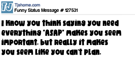 X says I know you think saying you need everything "ASAP" makes you seem important, but really it makes you seem like you can't plan.
