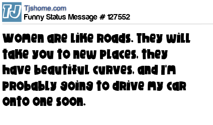 - # 182523 Women are like roads. The more curves they have the more dangerous they are.