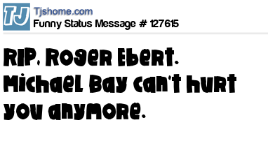 X RIP, Roger Ebert. Michael Bay can't hurt you anymore.