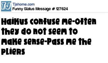 X Haikus confuse me-Often they do not seem to make sense-Pass me the pliers