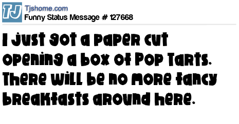 X says I just got a paper cut opening a box of Pop Tarts. There will be no more fancy breakfasts around here.