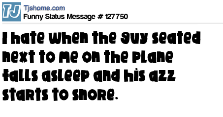 X says I hate when the guy seated next to me on the plane falls asleep and his azz starts to snore.