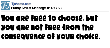 X says You are free to choose, but you are not free from the consequence of your choice.