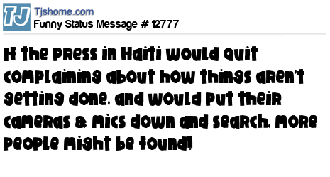 X says If the press in Haiti would quit complaining about how things aren't getting done, and would put their cameras & mics down and search, more people might be found!