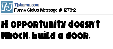 - # 13085 If there is a window of opportunity ... why the hell does it knock? Shouldn't it be a door? No wonder so many people miss opportunities. They answer the door, not the window.