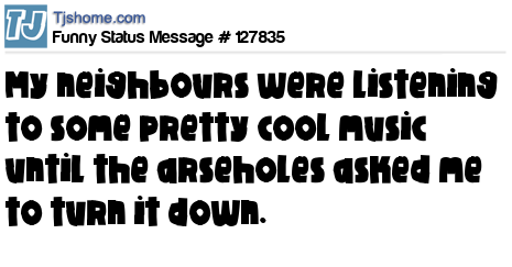 X My neighbours were listening to some pretty cool music until the arseholes asked me to turn it down.