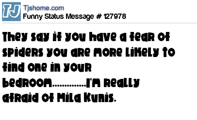 X They say if you have a fear of spiders you are more likely to find one in your bedroom..............I'm really afraid of Mila Kunis.