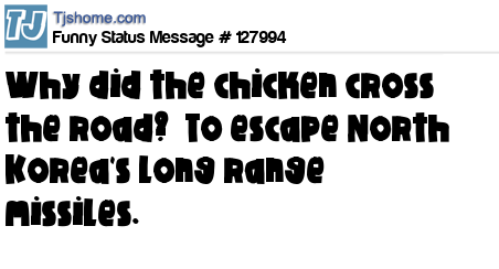- # 127851 Why did the chicken cross the road? To escape North Korea's long range missiles.