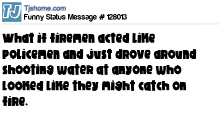 - # 149900 What if firemen acted like policemen and just drove around shooting water at anyone who looked like they might catch on fire?
