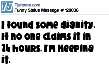 X says I found some dignity. If no one claims it in 24 hours, I'm keeping it.