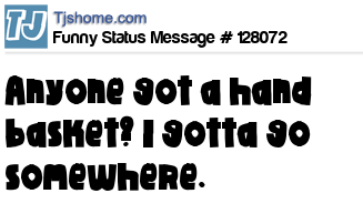 - # 128095 I gotta go to work and I can't find my hand basket!