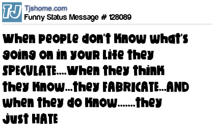 X says When people don't know what's going on in your life they SPECULATE....When they think they know...they FABRICATE...AND when they do know.......they just HATE