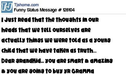 X I just read that the thoughts in our heads that we tell ourselves are actually things we were told as a young child that we have taken as truth... Dear grandkid… you are smart & amazing & you are going to buy yr Gramma chocolate everyday when she gets o