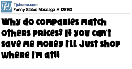X says why do companies match others prices? If you can't save me money I'll just shop where I'm at!!