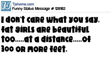 X says I don't care what you say, fat girls are beautiful too.....at a distance.....of 300 or more feet.