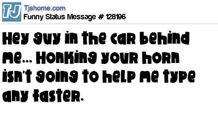 X Hey guy in the car behind me... Honking your horn isn't going to help me type any faster.