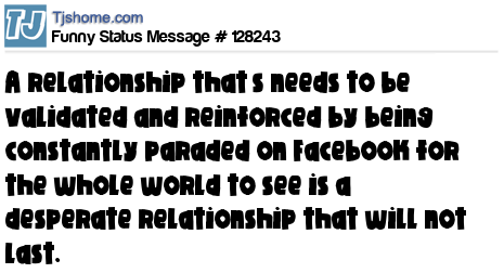 X says A relationship that’s needs to be validated and reinforced by being constantly paraded on Facebook for the whole world to see is a desperate relationship that will not last.