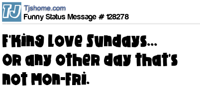 X says F'king love Sundays... Or any other day that's not Mon-Fri.