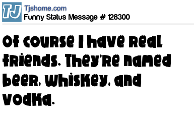 X says Of course I have real friends. They're named beer, whiskey, and vodka.