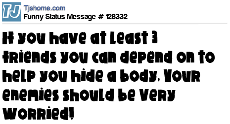 X says If you have at least 3 friends you can depend on to help you hide a body, Your enemies should be Very Worried!
