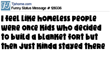 X says I feel like homeless people were once kids who decided to build a blanket fort but then just kinda stayed there