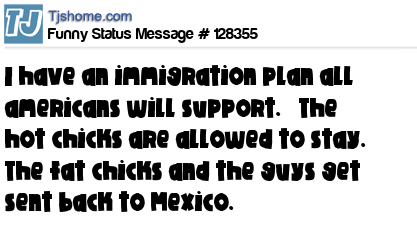 X I have an immigration plan all americans will support. The hot chicks are allowed to stay. The fat chicks and the guys get sent back to Mexico.