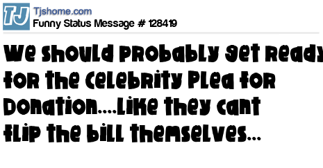X We should probably get ready for the Celebrity Plea for Donation....like they cant flip the bill themselves...