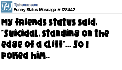 - # 106883 I have a friend whose status says "suicidal standing on edge of cliff'.... I poked him.