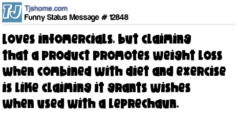 X loves infomercials, but claiming that a product promotes weight loss when combined with diet and exercise is like claiming it grants wishes when used with a leprechaun.
