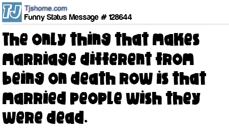 X says The only thing that makes marriage different from being on death row is that married people wish they were dead.