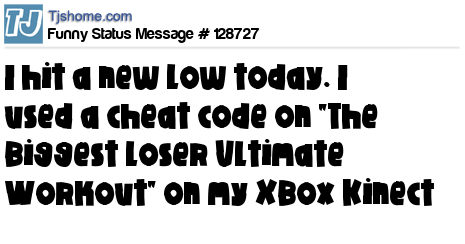 X I hit a new low today. I used a cheat code on "The Biggest Loser Ultimate Workout" on my XBox Kinect