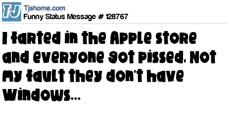 - # 121811 I farted in the Apple store and everyone got pi*sed. Not my fault they don't have Windows.