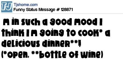 X ’m in such a good mood I think I’m going to cook* a delicious dinner**! (*open, **bottle of wine)
