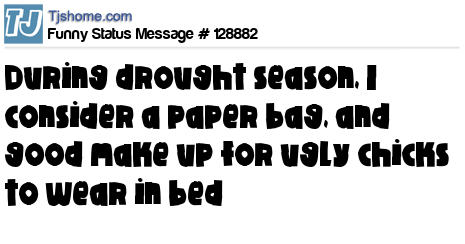 X During drought season, I consider a paper bag, and good make up for ugly chicks to wear in bed
