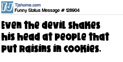 X says Even the devil shakes his head at people that put raisins in cookies.