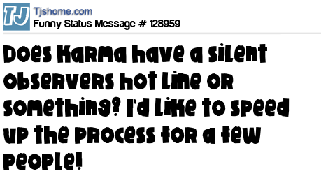 X is Does karma have a silent observers hot line or something? I'd like to speed up the process for a few people!