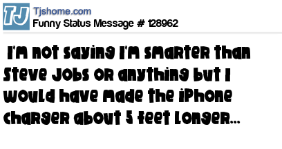 X is I'm not saying I'm smarter than Steve Jobs or anything but I would have made the iPhone charger about 5 feet longer...
