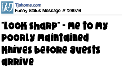X "look sharp" - me to my poorly maintained knives before guests arrive