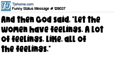 X says And then God said, "Let the women have feelings. A lot of feelings. Like, all of the feelings."