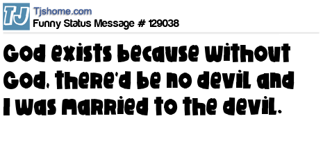 X says God exists because without God, there'd be no devil and I was married to the devil.