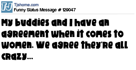 X says my buddies and I have an agreement when it comes to women. We agree they're all crazy...