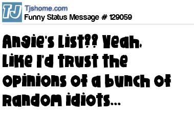 X Angie's List?? Yeah, like I'd trust the opinions of a bunch of random idiots...