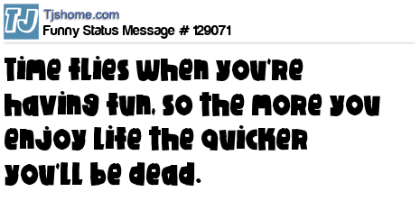 X Time flies when you're having fun, so the more you enjoy life the quicker you'll be dead.