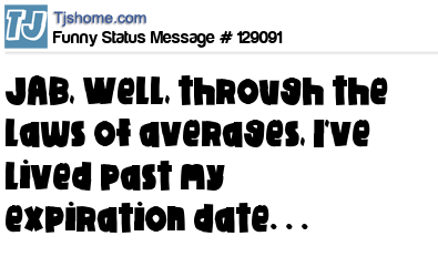 X says JAB, Well, through the laws of averages, I've lived past my expiration date. . .