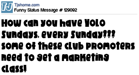 X How can you have YOLO Sundays, every Sunday??? some of these club promoters need to get a marketing class!