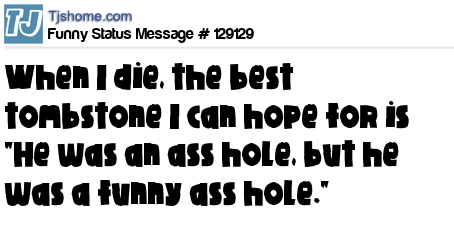 X says When I die, the best tombstone I can hope for is "He was an ass hole, but he was a funny ass hole."