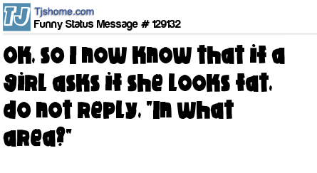 X says Ok, so I now know that if a girl asks if she looks fat, do not reply, "In what area?"